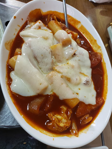 辛いのが苦手な友人と行ったので、チーズトッポギを注文。 トッポギも、辛すぎず。トッポギのほどよい柔らかさ。他の具もたっぷりで美味しいです。