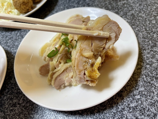 相方は.. 先のオーダー品の分量を確認しつつ.. 多品種少量に触発されて 3品を自由に選べる.. 「おつまみセット」 (大瓶ビール付) 1550円 の..選択したのは.. ・蒸し鶏和え物 ・豚肉糸切りピーマン炒め ・小エビの天ぷら