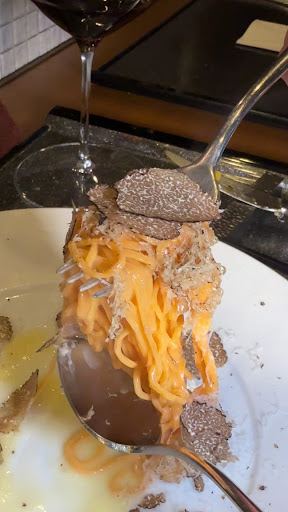 ⚫︎パスタ② 二種類目のパスタはトリュフのタヤリン。こちらも自家製パスタです。贅沢にも上からトリュフをスライスしてくれます。チーズもかけられており、コクが加わり非常に美味しいパスタでした😋