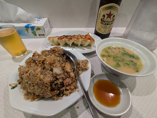 Read moreこの前ここらへん飲み歩いてた際、地元民にオススメされたお店。まあラーメンで〆るのが普通でしょうが、その方いわく最近ラーメンの味は落ちたけど、餃子は相変わらず旨いと。 そして私はこのところ焼き飯に凝ってますし、メニューには「超人気」とか書かれてましたので、焼き飯と餃子で勝負。 そしたら明らかに焼き飯炒めるスプーンの親玉みたいな器具(あれなんていうのだろう…)に乗せられへん量の焼き飯が皿に盛られます。なんか1.5倍くらいのかさがありましたよ。あんなもん上手くいくのか?と見てたら、案の定ぐちゃぐちゃ。