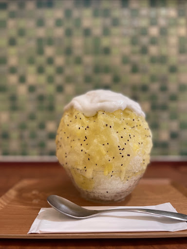 Colorful counter serve dishing out hearty servings of shaved ices in a variety of flavors.