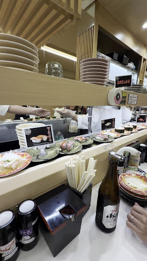 Read moreStaff only knows a little bit of English, but you won't need to talk much to get the food. Just look at the plate colour to determine the price, bottom row are food plate rollers, top are only to get wasabi and tea cups (do not get the plates as they are for chef to clean, and you may get charged for a plate colour instead). Green tea powder is at the table, with sweet and salty soy sauce.