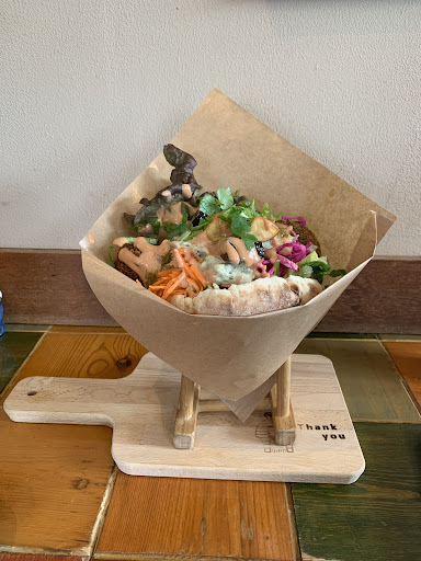 Read more初めて入った時は駅の方から来たのでシャッターがあって、閉まってる?って焦りましたが、隣にお店があってホッとしました。 ピタサンドもファラフェルサラダもひよこ豆のコロッケも酵素ジュースも全部おいしい〜。 時々常連さんと思われる方がいらっしゃって、あ、いてもいいのかな?と思ったりしますが、お店の主人の方がさりげなくお話を振ってくれたり、常連の方が話しかけてくれたりととてもいい雰囲気が流れているお店です。(もちろん1人好きの人にはそっとしてくれる配慮もありますよ〜。)そろそろ通い出して2年近く。いつでも笑顔で迎えてくれるお店の方にはいつも感謝。 来る方も面白い方や興味深いお話をしてくれる方もたくさん出会えたので、ご飯食べに行くだけじゃなく、いろんなことも知れる場所です。ファラフェルがおいしいから行くのですが、雰囲気も好きなので定期的に行っているお店です。ひよこ豆のファラフェルは栄養的にもスーパーフードだと思うので、ぜひ試してみてください♪(便秘の方には特におすすめ。) I have been around about 2years. Because they’re delicious foods and atmosphere of the restaurant is so good. The owner always smile and kind. Sometimes I heard interesting story or knowledge from customers. Of course the foods (specially the falafel) delicious, But you might get something more when you come to here. One day I saw the forgives came and eat falafel. When he ate it, he said “please give me complete same order.” It must be so delicious. ( I think he and his wife from USA.) If you are vegan or attention Organic foods, please try this restaurant. You might another recommend vegan food form owner or customers. I strongly recommend!! :) Thank you...
