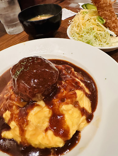 Read moreThis was my first time visiting this famous, long-established Western restaurant in Tenjinbashisuji Shopping Street. There is always a line whenever I pass by, so I decided to go when the line was short. There are about 8 counter seats on the right and 4 tables on the left, and the restaurant is full. After some hesitation, I ordered the C set, which includes an omelet rice, hamburger steak, and fried shrimp. The taste was as expected, and it was stable. The hamburger steak was juicy, the omelet rice was fluffy and creamy, and the fried shrimp was crispy. It's no wonder the restaurant is...