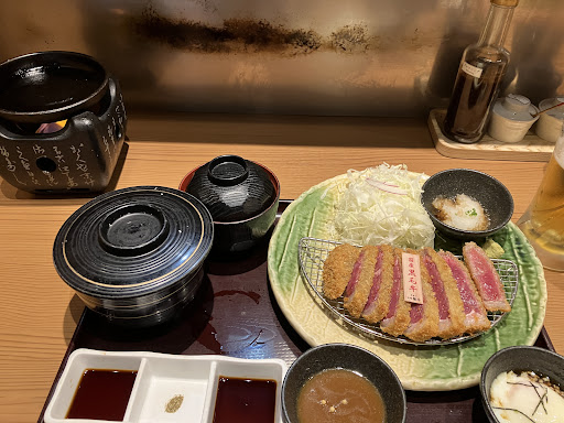 Read moreFor a low price of around 2000 yen, we got to enjoy some incredibly tender beef cutlets that were delicious. I really enjoy how they have so many types of dips which allows you to constantly enjoy new flavours throughout the meal. I feel like the wasabi was a bit light but it was still pretty good. All the sauces are flavourful and just complements the tender beef so well. With the crispy exterior as well, everything works so well together. I had the tenderloin cutlet and the aged one and they were both incredibly tasty. The service here is quite friendly and fast. The food was served in under 10 minutes. I do feel like some waiters were more cheery than others but overall, they were all respectful. The restaurant is pretty big with a lot of seats and we were lucky we didn't have to wait in a line but there's usually a lineup so please be aware of the wait time if you need to catch a train. We were also happy to find that they allowed us in the restaurant even though we were carrying two big luggages around with us. It was a bit scary because we had to leave them by the door but everything ended...
