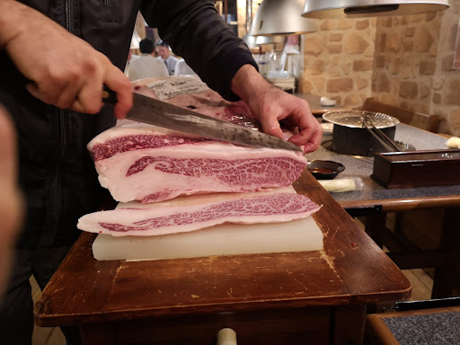 The concept of this restaurant is excellent. The shop owner would constantly walk around with huge slabs of sexy kobe and omi beef beautifully interlaced with delicious fats and cut it for you personally. The waiters there are extremely attentive and would serve up different cuts of beef when they notice you've ran out of beef. In case you're wondering what grade of wagyu they're using, it's A5 and they have certificates for proof.