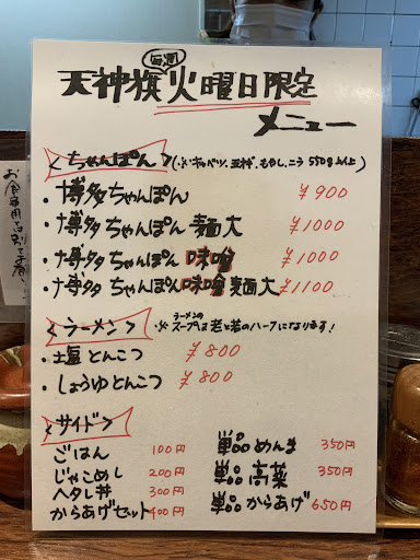 Read more数年前に購入した、関西のラーメンアワードの雑誌でとんこつ部門で1位を受賞しており、一度来てみたかった天神旗さんにようやく行くことができました。 上新庄駅の北口から歩いて3分くらいでしょうか、特に迷わず店に行くことができました。 日曜日の18:30くらいに店に着き、先に並んでいるお客さんが4〜5人。 夜の部は券売機は使用せず後払いなので行列に並んで店員さんに案内されるまで待ちます。20分程度待ち席に案内されました。 (事前の調査不足になるのですが、夜の部は特別なラーメンのみでとんこつラーメンは昼営業のみとのことでした。)