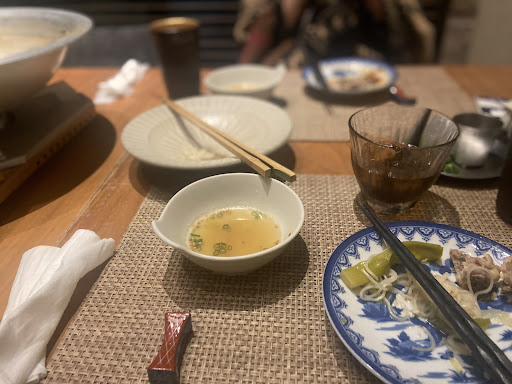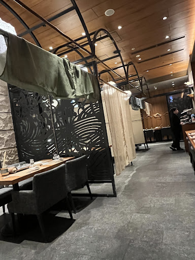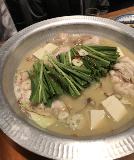 As a guest in the hotel, I was looking for dinner, traveling alone, and this was a great choice. It has a long counter along with lots of larger tables designed for privacy for the guests, with drapes of softly colored cloth separating them from one another and from the counter area. My seat faced a chef who was cooking a variety of things while I was there, and it was nice to be able to ask him questions. I ordered the motsu-ni, which is a hot pot made with innards. I asked what kind of innards, and the chef said that meat was from the heart area. Along with the meat, the hot pot had green onions, gobo (burdock root), cabbage, garlic, and tofu. It cooked on a little stove they placed in front of me, in a miso broth. It was incredible. I have not had much motsu in my life, and it was creamy and had a depth of flavor and savoriness that I just cannot describe. I thought, “just kill me now,” it was so delicious. I definitely want to go there again, which I probably will do during this...