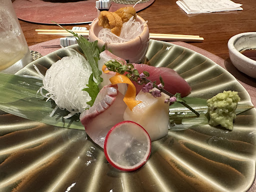 Snug restaurant serving up Japanese seafood entrees, sushi rolls, sashimi & sake.
