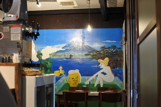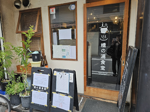 谷町六丁目から徒歩数分。からほり複合文化施設1Fにて営業をされております。中に入ると手前にカウンター、壁面には銭湯風?壁画が。そして目をあげるとお店のお名前の入った手拭いが。。私はここでようやく銭湯モチーフであることに気がつきました笑。言われてみれば橋の『湯』食堂さんだ!と。。謂れは存じ上げませんが、なんとも味のある雰囲気のお店です。