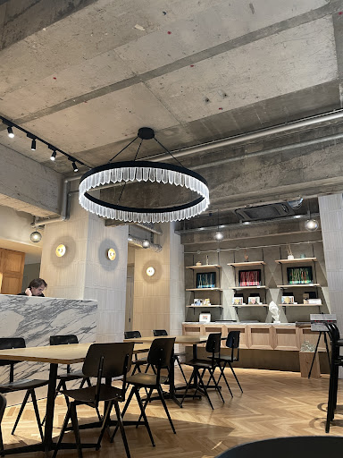 I had a hot chocolate but they specialise in specialty coffee. The barista seems to be very experienced. The environment is very comfortable spacious and clean. This place put me at ease on the first impression. The very friendly staff made me feel very welcome and comfortable. Mainly (all?) female staff. Comfortable and diverse seating. Gentle lighting. Big windows. Wooden interior. Natural light. Small private terrace. Good for studying or reading. Music is not too loud and not too bad. Clean bathrooms. They seem to be going for a sort of modern hotel vibe. Private members only vibe.