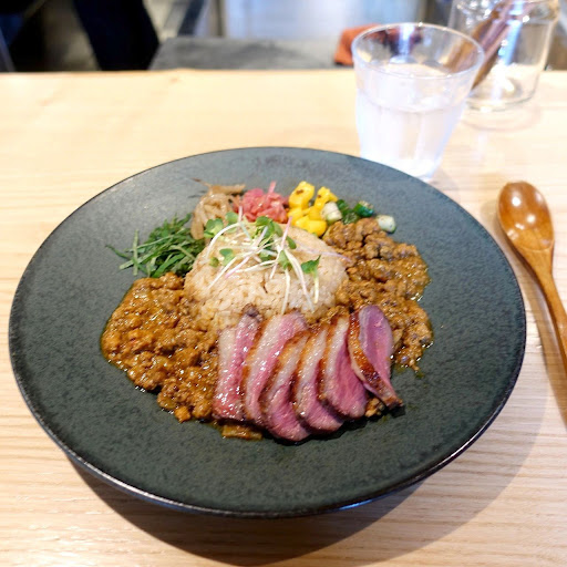 「idematsu一番人気」と掲げられた粗挽きラムキーママゼメシでお願いしました。 前店舗では曜日限定で提供していたものを、ファンのラブコールに応えてレギュラー化されたそうです。 鴨胸肉のローストも載せてもらいました。
