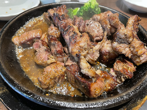 Make sure to wear the white apron they give you to avoid the hot plate splashing on you when it's placed in front of you. They have free sauces on the table and a few different sauces on the menu. I usually go with demi glaze or onion sauce from the menu in addition to the ones on the table. But the meat is good enough to eat without any sauce if that is your preference. The atmosphere is cozy and the staff is friendly. English is not spoken here so bring a translation app if you need one to avoid going "THIS" while pointing at the picture like...