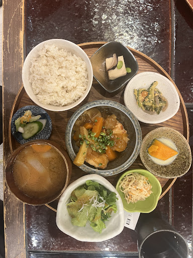 料理を運んできてくださった、髪の毛を後ろで一つくくりしている女性は穏やかでよかったです。 ようやく料理についてですが、 1人はカレー、私ともう1人は唐揚げの定食を頼みました。 カレーの知人は「あれ、なんかぬるい…味はおいしいけど」と言っていました。 私ともう1人の唐揚げ定食は、小鉢が多く、健康的なメニューでおいしかったです。特に唐揚げのソースの味付けが良かったです。 ただ、全く同じメニューを頼んだのに小鉢が1つ違ったのが気になりました。(私はかぼちゃの煮付け、知人は高野豆腐) きっとどれもおいしいので別に良いんですけどね… カレーがぬるかったのは、従業員さんが足りておらず提供が遅くなったとかでしょうか。 それ以外は、お食事の味は総合的に満足でした。