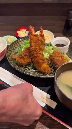 Read more福島周辺で用事があったため、近くで美味しそうなお店がないか探してたところ、インスタグラムで発見! ソッコーで初訪問です。 お店はメイン通りから1本入った住宅街の路地沿いにあり、隠れ家的な入り口のオサレなお店です☺️ 店内はカウンター席とテーブル席があり、店員さんに注文するスタイルです。 事前に予習した通り、カニクリーム御膳(カニクリームコロッケ2個、エビフライ1本、小鉢、カツオのたたき、お漬けもの、お味噌汁)を注文。 カニクリームコロッケですが、中身が詰まっためちゃ美味しい味付けのものでした😀 ソースもタルタルソースとトマトソースの2種類で、どちらも美味しい味付けでカニクリームコロッケと良く合い、ご飯が進みます🎵 エビフライですが、かなり大きめでプリプリのエビが詰まっており、衣が薄めでタルタルソースと相性が良く、めちゃめちゃ美味しかったです😄 カツオのたたきも臭みなど一切なく、めちゃ美味しかった! 小鉢やお漬けもの、お味噌汁も良い味付けで、ご飯がすぐなくなります。 ここの御膳は、ご飯とお味噌汁、そして卵(龍の卵)がなんと食べ放題‼️ もちろんご飯はおかわりをいただき、卵は2つもらい、卵かけご飯にして食べました🤩 めちゃめちゃ幸せです🥰 これだけのおかずが付き、ご飯・お味噌汁・卵食べ放題は、かなりコスパがいいと思いました。 今回のカニクリームコロッケもめちゃ美味しかったのですが、エビフライがめちゃめちゃ気に入ったので、次はエビフライ御膳を食べに来ようと思います😀 ちなみにここのお店は、以前に食べたことのある、近くにある多幸屋3組と言うお店の系列店らしく、そこのお店もかなり美味しかったので、...