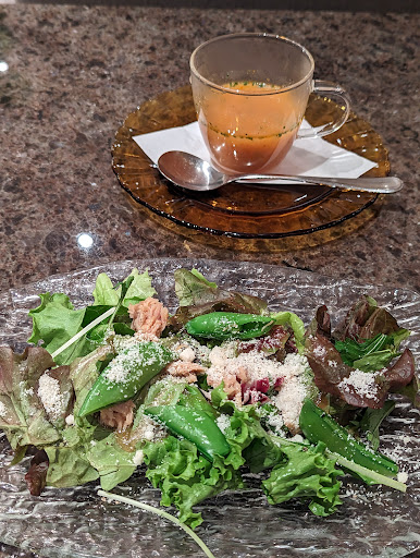 As a foreigner I was really surprised by the quality and texture of the pasta. It was cooked al dente and the Japanese style carbonara was very rich in flavor coupled by the cod roe for a more umami taste. The thinly sliced perilla leaf and eggplant gave the dish more nuisance as well. I really did not expect such a delectable pasta dish in this Osaka mall. I personally thought the portion was just the right amount. I also got the matcha latte which was very well made. The salad was a bit mediocre. It did not seem very fresh but the pasta and matcha latte made up for it. The cook / chef was also very enthusiastic. I could tell that he was a very good cook and was very hard working. I would definitely come back if I were visiting Osaka again. I wish they would try to make an english version of their menu so that it is easier to order food. It is really not that difficult to do. It just takes a little more time and effort. I actually unintentionally and accidentally forgot to pay for my meal due to a difficult situation that came up and when I went back to pay the lady was very kind and...
