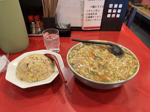 Read more初めてお邪魔しました✨️㌧㌧Ю(´∀`*) オジャマシマースお店の入口にはちゃんぽんの猛アピール‼️前々からここのちゃんぽんが食べたくてずっと気になってました~大昔に地元でトロトロの美味いちゃんぽんがあってそこのちゃんぽんにどこか似ていたので凄く凄く気になってました... 時間は11時30分頃です◝(⑅•ᴗ•⑅)◜お客さんは4、5組居てます。流石繁盛店ですカウンターが5席テーブルが5席くらいあったのでしょうか... 注文はもちろんちゃんぽんそして焼き飯です... ほとんどの方は定食をチョイスしている様でした(⁎⁍̴̛ᴗ⁍̴̛⁎)いよいよご対麺‼️まず焼き飯です...見た目は普通ですそしてお待ちかねちゃんぽん∑(°∀°)コレハァ!!溢れんばかりの餡掛けやばい美味そう(´﹃)しかも熱そう(...