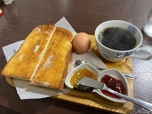 Ā Ā Ā Read moreA small, rustic coffee placed run by a elderly couple serving simple breakfast options with coffee. Despite mainly catering for the locals around the region, the couple are very welcoming to foreigners and helped me with my order despite my limited japanese. I had a breakfast set A that comes with a huge slice of toast with 2 jams, an egg and a coffee. The bread is soft and buttery and the coffee is good with sugar and milk added. It is a relatively small place but very cosy and homely. If you happen to be in the area and need your coffee fix, I strongly suggest coming down here to give this inexpensive, charming place a try. You get to have a local, charming coffee...