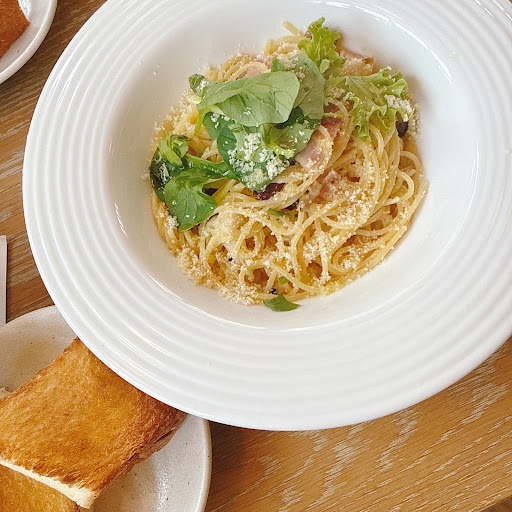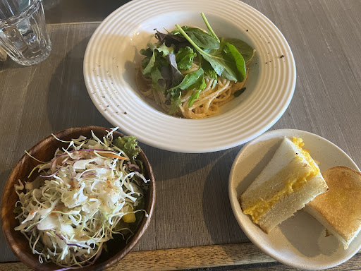 ランチのメニューは日替わりで選んだりは無く1種類のみでした!ベーコンとしめじのオイルパスタでしたが絶妙な味の濃さでとっても美味しかったです。サラダのドレッシングも美味しくて、カリカリのトーストも付いてきたのでそれをパスタのソースにつけて食べたらとっても美味しかったです。