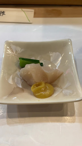 Scallops in fresh ground wasabi accentuated the sweetness of both ingredients and left me wanting more.