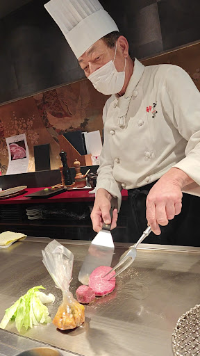 Read moreUnfortunate last dinner in Japan. After having spent 2 incredible weeks in Japan, with every single meal eaten (even random meals at small town street vendors) being a culinary experience, this has let me and my family down in all aspects. As this was our special last night, we made sure to order multiple good cuts of the restaurants supposed high quality kobe beef. After one of us made the mistake of asking if all the meat was wagyu (because the fillet clearly had 0 marbling) the table was rewarded with dismissive laughter and a condescending remark that this is kobe which is wagyu. The ribeye and sirloin had thick fat strands with none of the high quality marbling I had gotten used to seeing in japan. We all chose to trust the expert at this point and moved on just to be surprised at the cooking style to follow. The steak was seared for about 5 seconds on each side and 4 plastic bags with chopped veggies were chucked on the cooking surface and started bubbling. Meanwhile we were given some wagyu sushi which was undercooked, chewy and flavourless. When we did receive our tepanyaki grilled meat I was surprised that the meat was a mix of rare/medium-rare and not medium as we had requested (although this had not been inquired about by the chef). Me, being the introvert I am, just swallowed these pieces but my unlucky companions got snide remarks when they asked for their meat to be cooked a bit more. Throughout the meal we were told how to eat the meat, which sauce to use, which may have been well meant but ended up feeling a bit much as I felt i couldnt use the sauces I wanted to, but had to follow the instructions from the chef on how to dip or not dip the meat. To finish we got some soup (boiled water with small meat chunks floating) and some rice which was decent to be fair. In all honesty the salad entre was nice, with good sauce. This disappointment cost over 700 pounds. Miss this restaurant for the love...