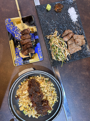 I had some of the best Kobe beef of my life! I got the the skewers and the nigiri sampler which included the tough, tender and premium Kobe as well as Tuna and salmon nigiri. It did not disappoint! If you only had to get one thing I would suggest the sampler because it really gives you an idea of the difference in the meat. I loved the tender Kobe because of how tender it was and there was really no chewing necessary but I loved the flavor of the premium. If you are kinda iffy on the raw meat just know it’s not fully raw, they do sear it a bit. They were also very generous with the cut of the fish nigiri and was really tasty as well. I wish we hadn’t waited until our last night to try this place out. We would have definitely came back here more times if we had tried it sooner. It’s worth every penny. The 2 chefs were the only staff members there but they still made us feel welcomed and addressed any questions we had. I wish I had taken pictures of the food but I was in such blissful paradise to even remember to take pictures. I hope to visit this place again next time...