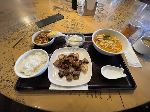 Read moreランチセット。いつもは担々麺セットですが、今日は違う日替わりセット。ここはドリンクバーもついていて、実はとてもお得なランチを食べれます。16Fの北側に机があるので眺めは最高によい。12時になると一気に人が増えるので、5分でも早く行くことをお勧めします。あと、女性スタッフもここをお勧めしています。ーーーーーLunch Set. I usually go for the Dandan noodle set, but today I tried a different daily special set. This place also includes a drink bar, making it a surprisingly great value for lunch. There are tables on the north side of the 16th floor, offering an amazing view. At 12:00, the crowd grows quickly, so I recommend arriving even five minutes early. Plus, the female staff here also...