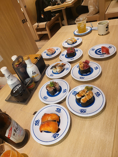 They have many food options and not too many drink options. We enjoyed the meal, but I wouldn't return. Yes, it is fairly affordable, and you get what you pay for. The quality was not amazing for my personal preference. However, if you are not very picky with sushi, you should be fairly satisfied with this chain restaurant. I want to stress that the food isn't 'bad' at all. It's just OK in my opinion. We (two people) ate a decent amount and paid around ¥2500 including two drinks. The photo attached was not everything we ordered -- it was just the first round of plates...
