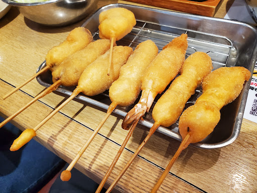 Before the pandemic, these skewer restaurants were unique because they had the shared ‘sauce’ tray. You would get deep fried foods on a stick, dip into the tray, and then have twenty signs telling you not to double-dip.
