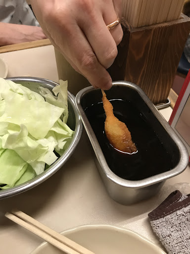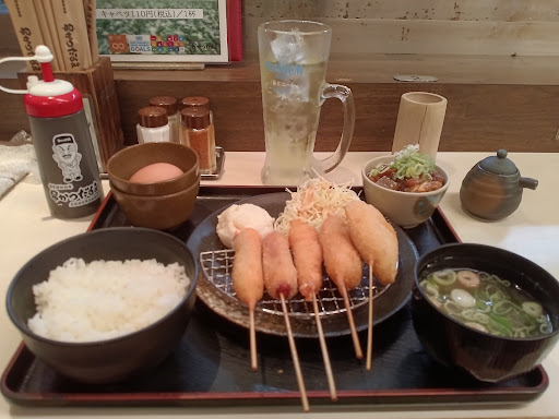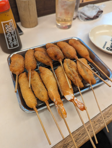 Read moreI went to this restaurant on a Friday night. It was very crowded and we had to wait about 20 minutes. The locals obviously like it - kushikatsu is a food unique to the Kansai area like okonomomiyaki, however, I thought the coating was a little too thick. I was fortunate enough for someone to let me enjoy homemade kushikatsu and the difference was great. The home made version had a light dusting of "panko" (breadcrumbs), whereas the commercial version practically had a pretty thick coating of batter or flour before being covered with panko. The ingredients were fresh though. Service was very good and polite. And despite taking our orders on an electronic device, they still got our orders wrong. But we were not charged for the wrong items. Price was not cheap but not terribly expensive either. I highly recommend the mentaiko, oyster, salmon,...