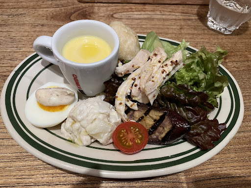 まず前菜とグラタンを注文しましたが、 とてもお腹が空いていたので何か先につまめるものをと思い「すぐに出てくる料理はなんですか?」と聞くと、 両方ともすぐ出ると言われたので特に追加せずにそのままお願いしていたのですが、 スタッフさんと私の「すぐに」の価値観が違ったかもしれません。 前菜が出てくるまで40分は待ちました。 その間永遠テーブルの上にはビールグラスのみです。