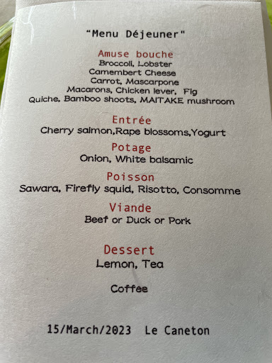 Read moreMy wife and I had dinner here last night. We've been to many places that have a set menu, this may have been one of the best. Every dish and every detail well thought out, executed and delicious! We included the wine pairing and had excellent choices there too. So glad we went to Le Caneton and highly recommend it. We'll be back on...