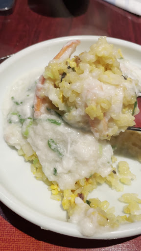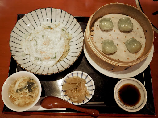 ◆かに身入あんかけ炒飯 税込 1,300円 炒飯の上に白い餡がたっぷりかかってます! 別でセイロに入った蒸したてほかほかの蒸し餃子もありますよ。 まずは炒飯から食べてみると、生姜のような風味が強めでちょっと苦手。 だって、生姜は好きじゃないんだもん、汗 餡は白くてふわふわした感じで、少し蟹の風味を感じます。 個人的には、生姜の刺激が無ければもっと美味しく感じるのになぁと思いながら食べてました。 海老蒸し餃子は丁寧に包まれた可愛いのが4個。 皮はモチモチして海老風味も感じますがタレが味気ない。 この餃子のタレは醤油と酢だけなのかな? この餃子には合ってない気がして勿体無いなぁ。 スープは文句なく美味しい。 この定食の中で1番美味しいと感じました。