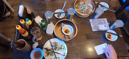 The high reviews given by other patrons did not reflect my dining experience here tonight. Our group of 4 waited a brief time at the front door for a table to clear up. We were lead to a dirty table top full of water from the previous guests. They apologized, asked us to wait again while they cleaned the table. We were sat down and just as we draped our belonging on the chairs and got comfortable, we were asked to move tables, to a even more dirty table. They cleaned it as quick as they could and sat us down. We ordered five dishes as a group and a beer. One of my friends received their beer, appetizer and pho quiet quickly. Two of us each ordered pho and to get remaining friend ordered at curry rice. From the time my first friend got his 3 items, it took over 45 minutes for the rest of our order to appear. We reminded them twice that there were more dishes ordered and the first time they brushed us off saying yes, it's coming. The second time we had to insist that they physically look at our order history on our phone because the kitchen seems to have lost it. The dishes then took ten minutes to come out and the taste was very mediocre. Staff were not very apologetic. The toilet is basically abandoned and without signage. There was no hand soap in the washroom. When we were leaving ,at the mouth of their entrance, there were two rats searching through the garbage at their entrance looking for food. Many tourist saw this as an attraction, took many photos and screamed plenty.