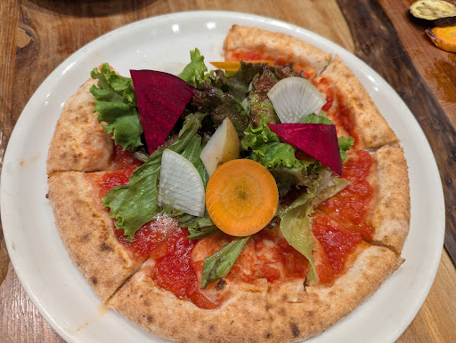 Organic restaurant that focuses on local fresh vegetables. They have several vegan options including a pizza (no vegan cheese), pasta, and a few salads. I liked the grilled vegetables best, though if you are hungry the portions are small. You get two of each kind of vegetable. There is a salad that comes with tofu, which was very nice but also a bit small (two small pieces of tofu and a few beans). The focus of the restaurant is on health which may explain why the vegan options left me hungry, but they were all very good. Everything was simply seasoned, not a lot of herbs and no spice. I think a nice dipping sauce to go with the vegetable plate would have elevated the meal. The vegetable pasta dish was very fresh, also a very simple sauce without much seasoning. The salad pizza is very light and refreshing. I was hoping for a crispier crust, but with the salad and sauce, it is a very floppy fork and knife pizza. Overall a very nice experience if you are looking for a healthy meal. I'm grateful that they offer many good...