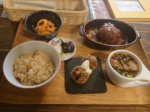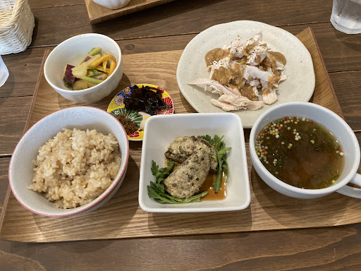 ランチタイム終わりかけのため選択肢はなく 蓮根ハンバーグの1択 麹 味噌の味付けが基本のようで 無添加っぽい優しい味がする ハンバーグがカレーソースと意外だったが美味しい 好みの問題ではあるが全体的に味付けが濃い 以前グルテンフリーのお店のお姉さんも濃い味付け これくらいのお姉さん世代の流行なのだろうか? 優しい味なのになんだかもったいないと 思ったが若い人には好まれるのかな
