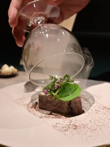 長崎県産の戻り鰹は 藁焼きをイメージした演出で𓂃◌𓈒 マスカルポーネの塩味と イチジクの甘酸っぱさ。 そして最後に来るケッパーの爽やかさ❗️ お皿のカカオパウダーがとてもよく合っていました。 ケッパーに感動🥹