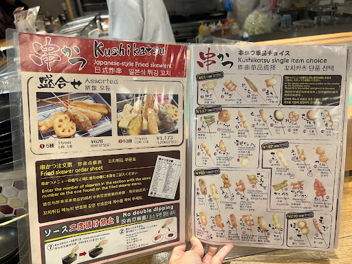 It seems to have been renewed, and the exterior and interior were very beautiful. Mainly sushi and kushikatsu, but as an izakaya, they also have a variety of a la carte menus. Rather, it might be better to say, "It's an izakaya, but they also have a full sushi and kushikatsu menu."