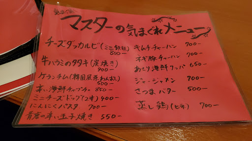 Read more我孫子筋沿いのまる喜というお店。 場所で言うと長いと我孫子のちょうど真ん中ら辺でしょうか。 店前を通った時気になったのはキンパ500という文字。 テイクアウトのキンパが500円って事らしく横にはチヂミも。 チヂミはえびチヂミとミンチチヂミの2種類でこちらは600円です。 キンパを買って帰りました。 11個に切られたキンパ太さはそんなになくまさに1口サイズ。 逆に食べやすくてイイです。 断面はカラフルで中身は玉子焼き、ごぼう、沢庵、ソーセージ、ほうれん草、にんじん、牛豚ミンチと具沢山。 噛むとこれまた沢庵のカリッとした食感と他の具材の旨味が見事なバランスで合わさっています。 キムチとかそういった辛そうなものは入っていないから子供も喜んで食べれる感じ。 500円でこのクオリティは素晴らしいですね。 我孫子か長居かちょっとわかりにくい中途半端な場所ですけどもしこの辺りを歩く機会があれば...