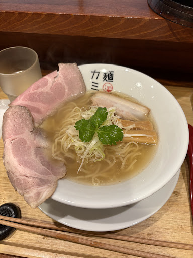 On my latest visit to a ramen shop near Ebisuchō Station on the subway, I was eager to try their another menu. I opted for Salt Ramen and Gyoza set, an excellent choice for lunch. The ticket vending machine made ordering simple and efficient. The ramen arrived promptly, and the first sip of the soup was heavenly. The broth, a light yet rich blend of chicken and seafood stock, was wonderfully enhanced by aromatic oils adding depth and umami. The noodles, perfectly firm and smooth, complemented the flavorful broth.
