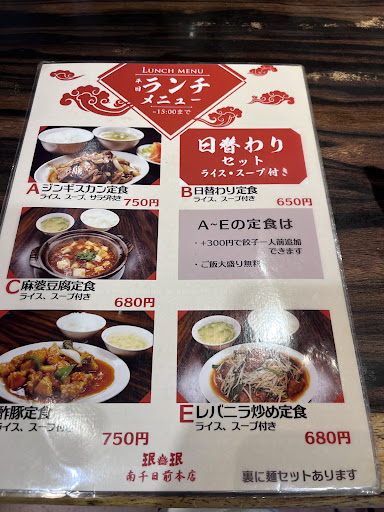 A: Genghis Khan Set Meal: Includes rice, soup, and salad - 750 yen