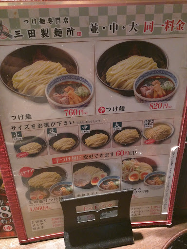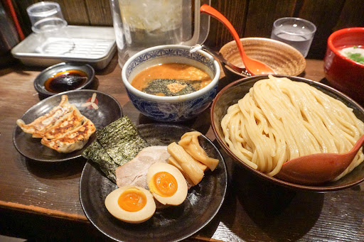 Really good tsukemen. Soup was flavourful and the noodles were thick and delicious. You can choose the size from small, regular, medium, large and extra large. Extra large is 100 yen more and small is 30 yen less and the others are all the same price. I had medium (中) which was more than enough (460g). I ordered the egg and pork ramen but it probably wasn't worth the extra 220 yen as you only get 1 slice of pork so go for the regular tsukemen for 760 yen and some gyoza if you are really hungry. They have a wide range of noodles and side dishes. Expect to wait for a table. It was quite popular with women too as it's not as heavy as most...