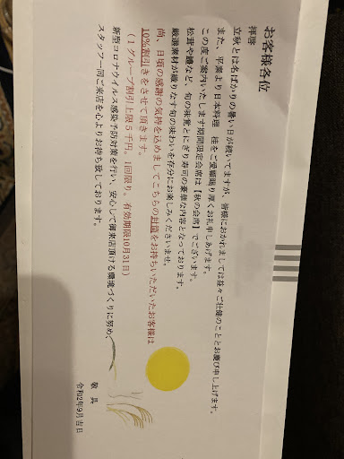 Read more2021.11月 平日 久しぶりに ゆっくりランチできそうだったので、お気に入りの和食店 桂にしました。 ランチでも当日 電話で座席予約ができます。 ミニ会席 3.850円 一品ずつ提供されるので、温かいお料理が嬉しいです。 天井高く、開放感あるガラス張りの明るい店内。テーブルに以前はなかったパーテーション(固定)があり、向かいあって食べるのには お話ししても聞こえづらいです。あと、乾杯も出来ない感じ。感染対策 なら、ここくらいのお店ですと マスクケースも用意していて欲しいところ。会席はそこそこ時間かかりますし、カフェでもマスクケースがテーブルに置かれているお店がありますしね。