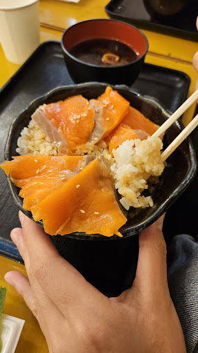 The meal was expensive. The price is higher than displayed price shown outside of the stall. It was a long wait too. When the salmon sashimi rice bowl was served, I was shocked by the texture and had doubts about its freshness. When I left, I glanced at how the food was prepared and confirmed my doubts.