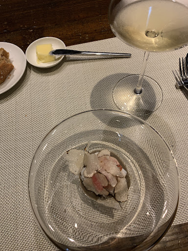 こんなに良心的で尚且つ、美味しいお店は初めてでした。まずテーブルにグラスウォータを置いてくださってることに驚きました。他の大抵のお店はワンドリンク制か、もしくは、飲み物を勧めて来られますが、こちらのお店はお客さんの自由です。とはいえ、好みを伝えて選んで頂いたワインはとても美味しかったです。フォアグラ エビ ホタテ キャビア トリュフ フグ 鮑 白子 蟹 牛タン(タンの一番美味しい部位)を全て5000円で頂けるお店がここ以外にあるとは思えません その他にも高級食材、ジビエ 拘った食材を美味しく贅沢に料理されます 最初から最後まで美味しく楽しく、良い意味で驚かされっぱなしでした 最後のドリンクまで、楽しくて、紅茶なら10種類くらいから選べますよ ラテもほうじ茶 抹茶 どちらも可愛いし、珈琲は煎りたての豆でとても美味しかったです 焼き立てのパンもふわふわで美味しいので、しっかりお腹を減らせて伺って下さいね カウンターだけの小さなお店ですが、足を運ぶ価値有りです ※※※※※※※※※※※※※※※※※※※※※※※※※※※※※※ 追記 今日もお世話になりました 3度目の訪問です 毎回期待を裏切らないのが凄い!! また伺いますね