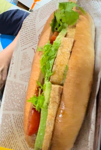 Read moreI ordered the vegetarian Bahn Mi for lunch, and was easily the best Bahn Mi, vegetarian or not, that I've had outside Vietnam. Happily, the bread was the real deal and you could tell it was baked just a few hours earlier morning, so crisp and light! Best of all for anyone who enjoys vegetarian dishes, they're adding a whole lineup of about 8 vegetarian dishes to the menu from next week (early November 2024), which I'm personally looking very forward to coming back and trying. I'll report back on those in the future! BTW, music was good too, with great service by the staff. I also took home some sort of bubble tea drink with coconut milk and some sweet kidney beans and I think sweet potato, which I totally forgot to photograph, which was absolutely delicious. I only order drinks like that maybe once a year and usually regret it since they're nearly always far too sweet, but this one was right on the money. Only just a very slight, natural sweetness, and an amazing texture of the boba and other components. Note for vegans/whole food plant based: You can get a vegan version of vegetarian tofu bahn mi by asking for it without mayo. If I were to order it that way, I might add some of the pickled garlic and peppers from the jar on the table, or some Chin-Su hot sauce (also on the table), to add back to the sandwich some of the moisture and zing provided by the mayo. I didn't try it though so I can't vouch for the flavor...