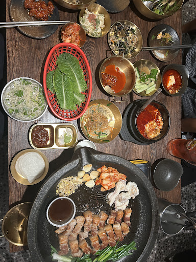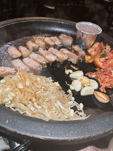 We ordered the all-you-can-eat and drink course, including the Samgyeopsal set for two. The food was delicious, and the atmosphere inside was friendly and relaxing.