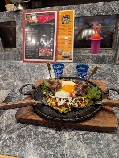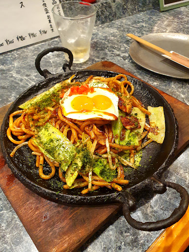 We ordered a pork noodle teppanyaki and a seafood okonomiyaki plus 2 glasses of umeshu on the rocks, and needless to say we were really satisfied, especially at the time we came in and in a relatively quiet area. Great little spot for okonomiyaki or a late...