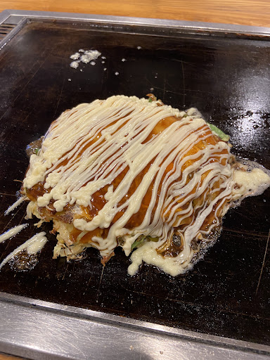This place is absolutely incredible!! I had never tried okonomiyaki before visiting here but it was honestly the best thing I had ever eaten in my life!! Determined to try somewhere else to compare I did and the second restaurant came nowhere near in comparison. I have been in Osaka for 1 week and eaten here 4 times and each time it has been just as amazing as my first. Lovely family restaurant and we have even seen the owner in there on more than one occasion. The menu is not in English but the waiter is very good and happy to explain the dishes to you, but in all honesty you could order anything and be extremely happy with it. I wish I knew how to say in Japanese “your food was the best thing I’ve ever eaten...