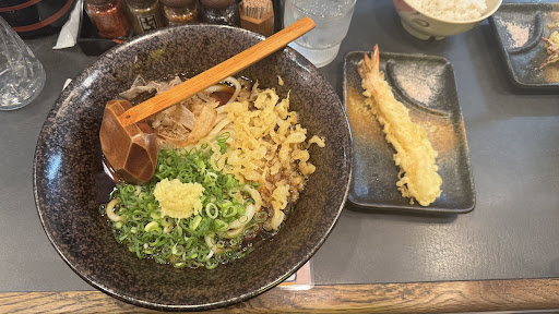 I had the Bukkake Udon (hot not cold) which is like a regular bowl of udon but with half the amount of soup and I ordered king prawn tempura on the side. Probably one of the best bowls of udon I’ve had in Japan and I have lived in the country for about 5 years. My partner had the Niku Udon (hot) the beef was super yummy and well cooked but didn’t overpower the soup. The noodles were perfectly soft. Not at all rubbery or overcooked and the soup was really punchy and delicious. It had a traditional taste but with something extra I couldn’t out my finger on. The ambience is exactly what you’d expect from a great udon restaurant, totally understated, with no stylish/modern interior, just the essentials for putting together some Real Food. Lastly the staff were lovely. Like really. Smiley, kind, helpful. Granted I speak Japanese so I can’t really relate people who don’t but… at one point I asked for “su-pu wari” which is something you usually get at ramen shops when you have a bit of left over soup and they add a hot, clear stock so you can enjoy a little bonus soup. They didn’t have it but because I asked they tried their best to make it for me which I really appreciated and I DID drink every last bit of soup.
